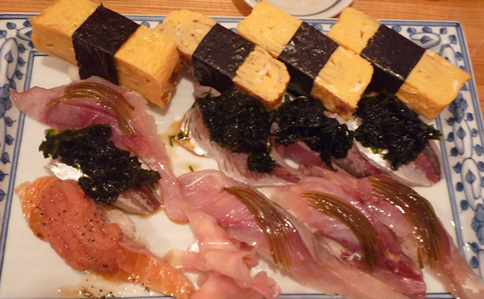 - 一見さんには、お店の人から「銀平(11貫コース)」をまず薦められます。ネタが大きいので、何もしらずに「得々(15貫コース)」を注文すると食べきれないことがあります。小食の人は覚悟して(空腹にして)来店してください。ちなみに、「松(8貫と巻物)」のコースもありますが、量的には「銀平」とあまり変わらないと思います。