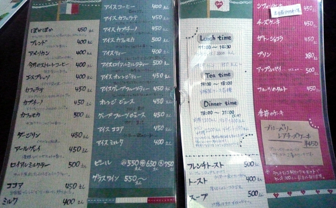 - ランチタイムのラストオーダーが14時半から14時に変わりました(2013年5月1日より)